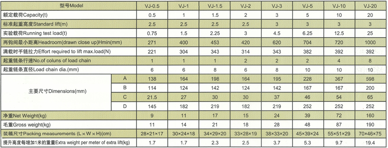 VJ系列手拉葫蘆在結構設計上與使用性能上,具有以下特點: