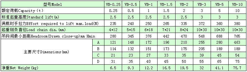 VB系列手拉葫蘆在結構設計上與使用性能上,具有以下特點:
