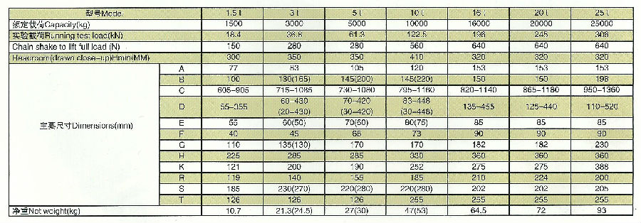 機械式千斤頂參數: